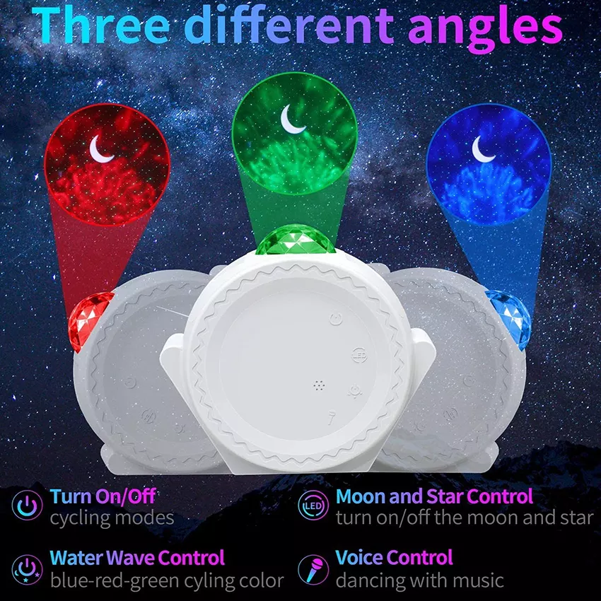 يقوم بعرض القمر والنجوم بألوان مختلفة على الجدران والسقف.