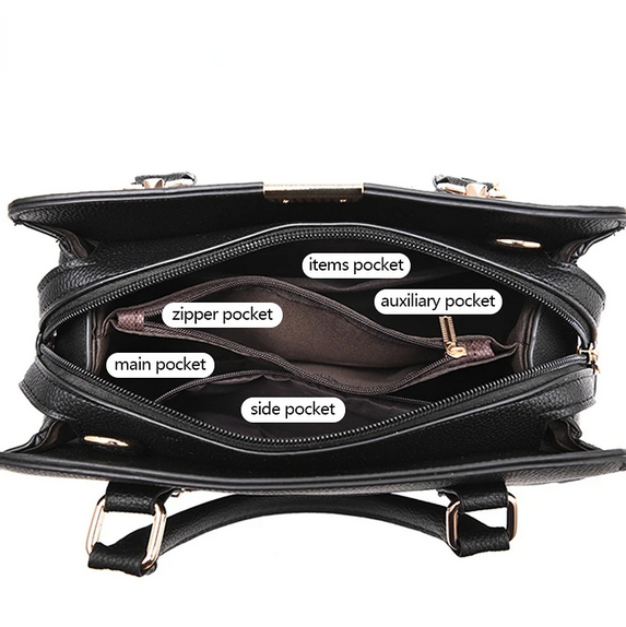 تتضمن جيوب متعددة ومساحة داخلية واسعة لتنظيم أغراضك الشخصية بسهولة، مثل الهاتف المحمول، المحفظة، مستحضرات التجميل، والمفاتيح.