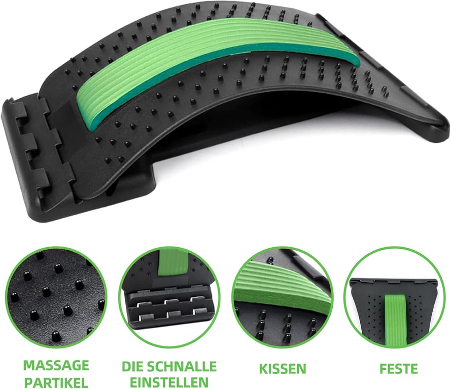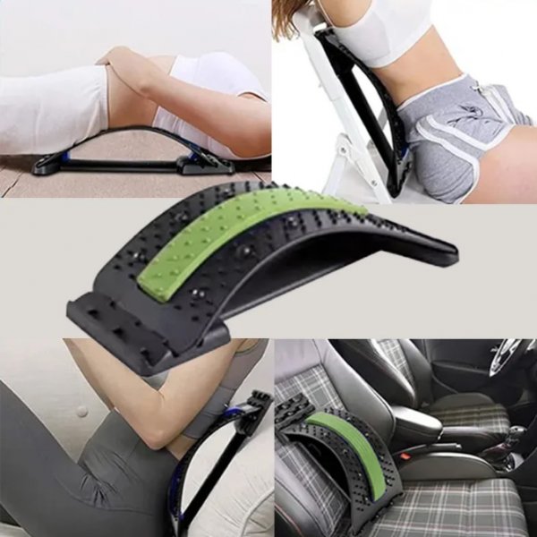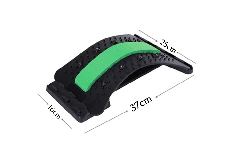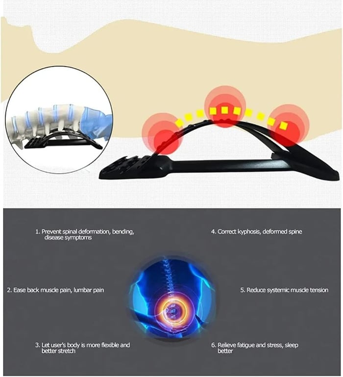 يتميز الجهاز بتصميم منحني يناسب الانحناء الطبيعي للعمود الفقري، مما يساعد على تحسين مرونة الظهر وتعزيز وضعية الجسم. يمكن استخدامه لتخفيف آلام الظهر الناتجة عن الجلوس الطويل أو التوتر العضلي، كما يساهم في تحسين الدورة الدموية وتقليل التصلب في منطقة الظهر.